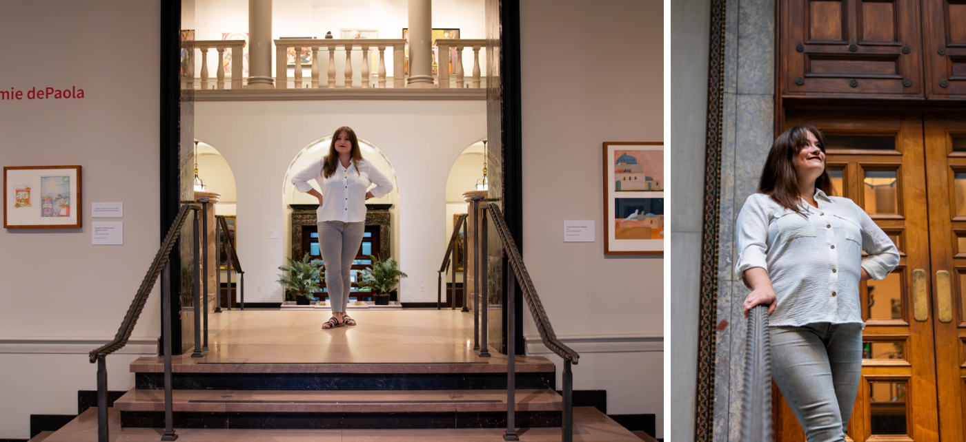 We just basically walked around the museum looking for fun artwork that we could play with as a background. The Currier Museum, in particular, has a lot of different staircases, which is great for angles. So, you’ll see a lot of stairs in these photos since there were so many options.